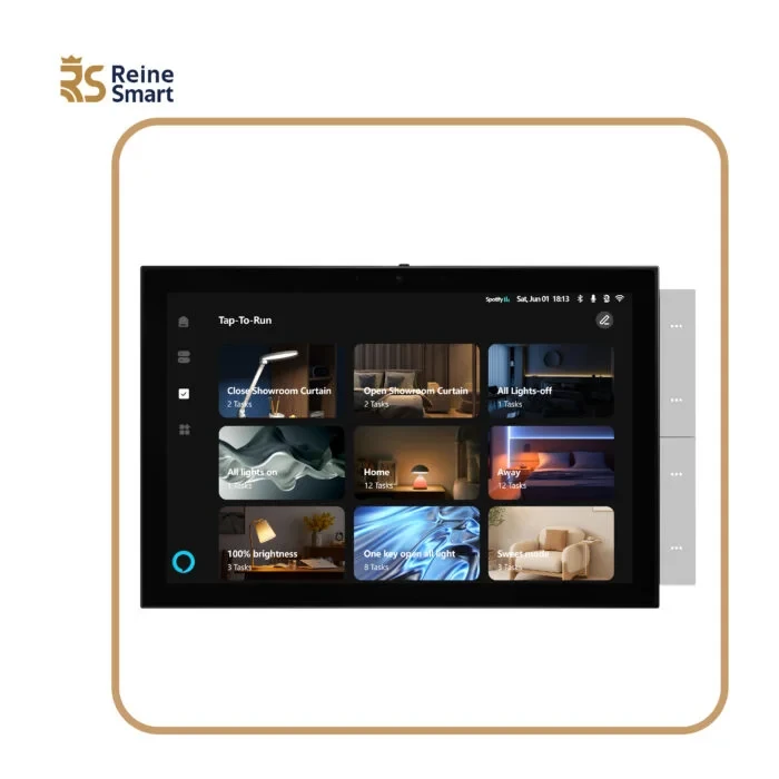 شاشة مركزية ذكية 10 انش للتحكم بالإضاءات والستائر والنظام الصوتي للمنزل مدمجة بنظام الأوامر الصوتية ALEXA باللغة العربية